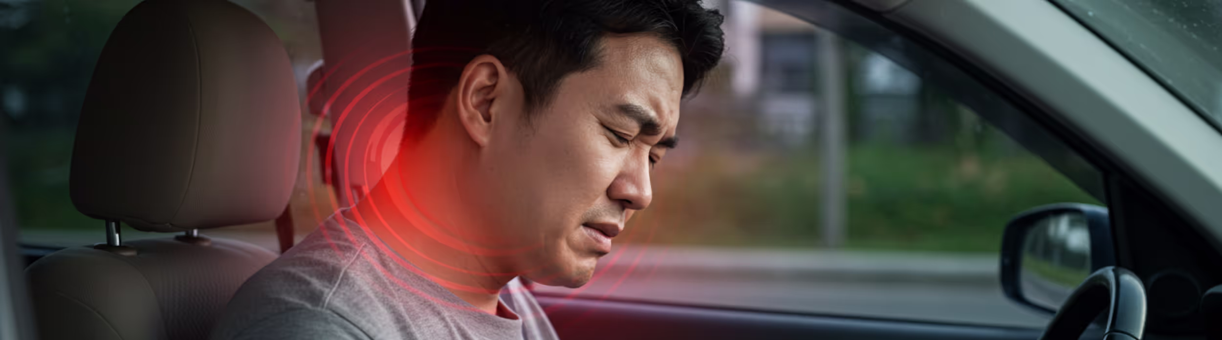 예기치 않은 사고나 순간적인 부적절한 동작이 목 인대와 근육에 과도한 부담을 주어 미세 손상을 초래합니다.