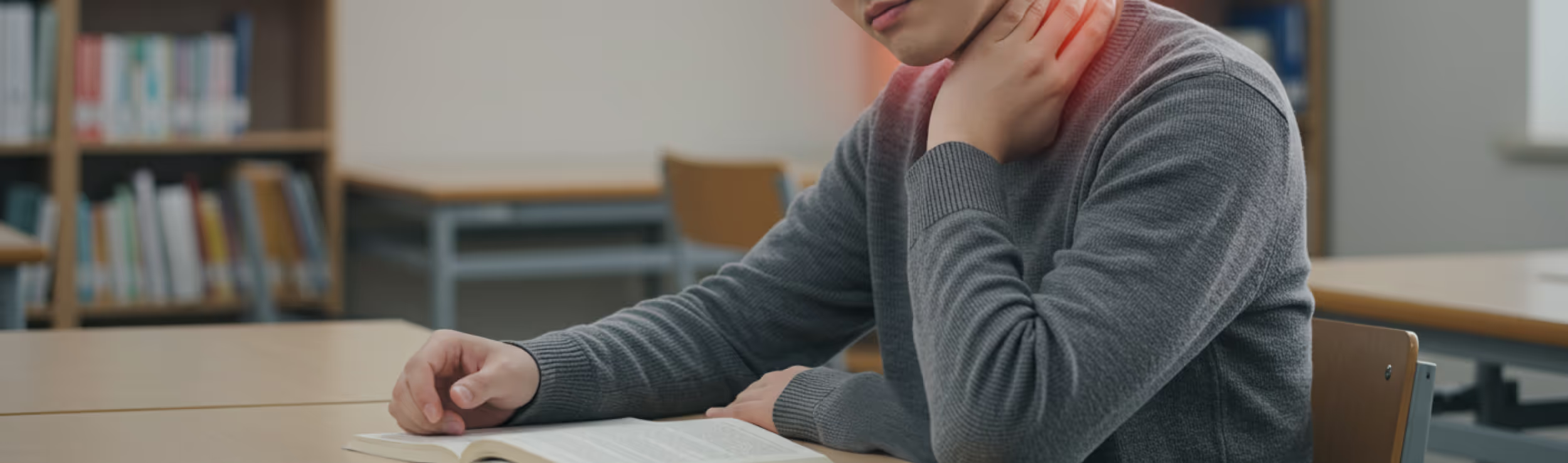 불균형한 목 자세는 혈액순환을 방해하여 근육에 충분한 영양 공급이 어려워지고, 피로물질이 축적되어 경직과 통증을 유발합니다.